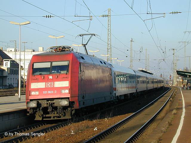 101 069 am 09.12.2001 mit IR 2560 Nürnberg-Karlsruhe in Bruchsal