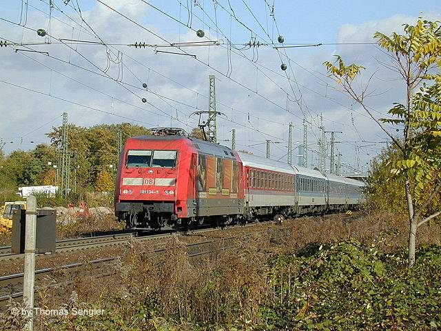 101 134 am 01.11.2001 mit IR 2217 Norddeich-Karlsruhe in Bruchsal