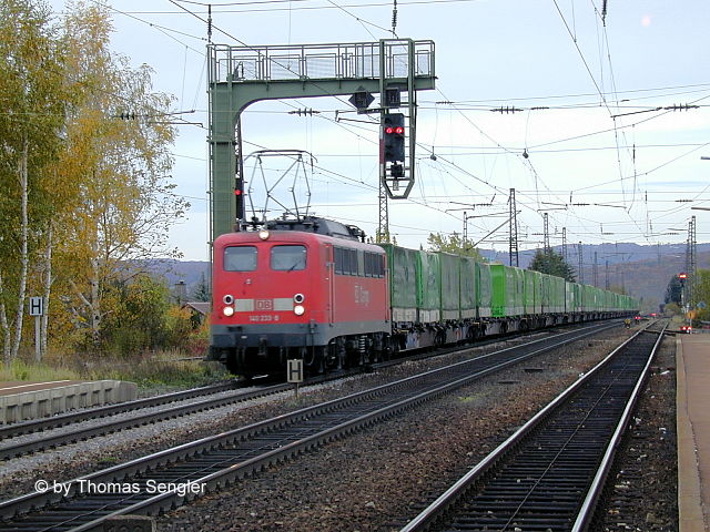 140 233 am 24.10.2002 mit Güterzug in Denzlingen