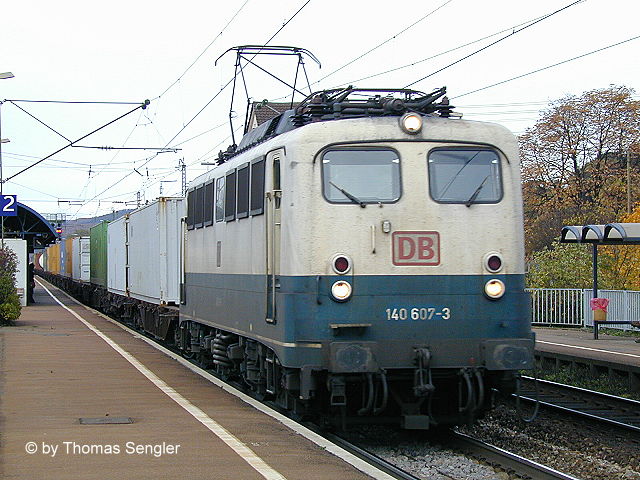 140 607 am 24.10.2002 mit Güterzug in Denzlingen