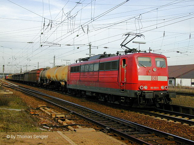 151 155 mit Güterzug am 30.01.2002 in Graben-Neudorf