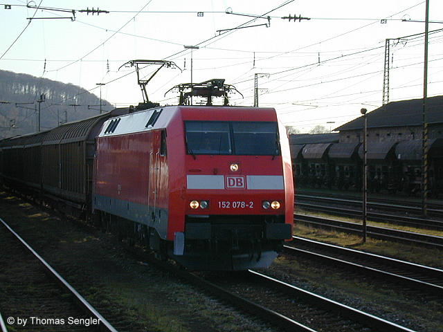 152 078 mit Güterzug am 16.03.2001 in Bruchsal