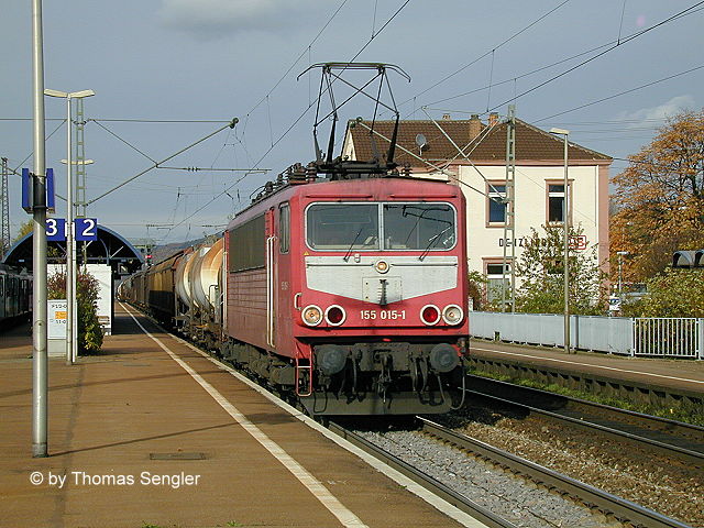 155 015 am 24.10.2002 mit Güterzug in Denzlingen