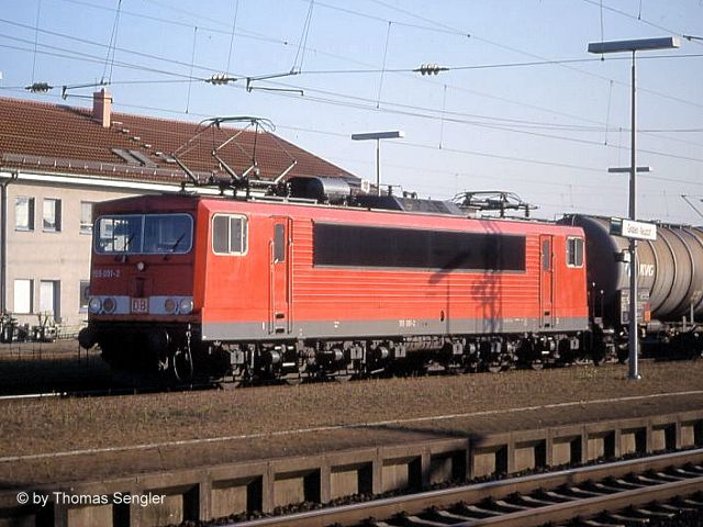 155 091 mit Güterzug am 19.10.2001 in Graben-Neudorf
