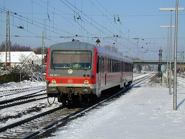 628 280 am 31.12.2001 als RB von Mannheim nach Karlsruhe in Graben-Neudorf