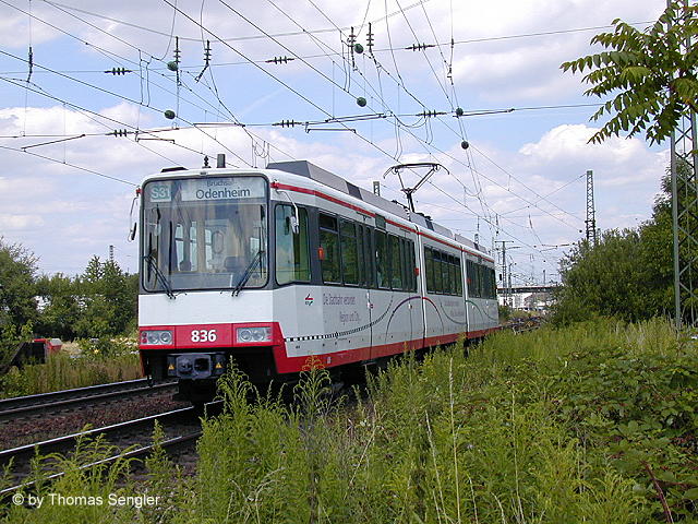 836 Zweisystemtriebwagen der AVG am 21.07.2001 in Bruchsal (Süd)
